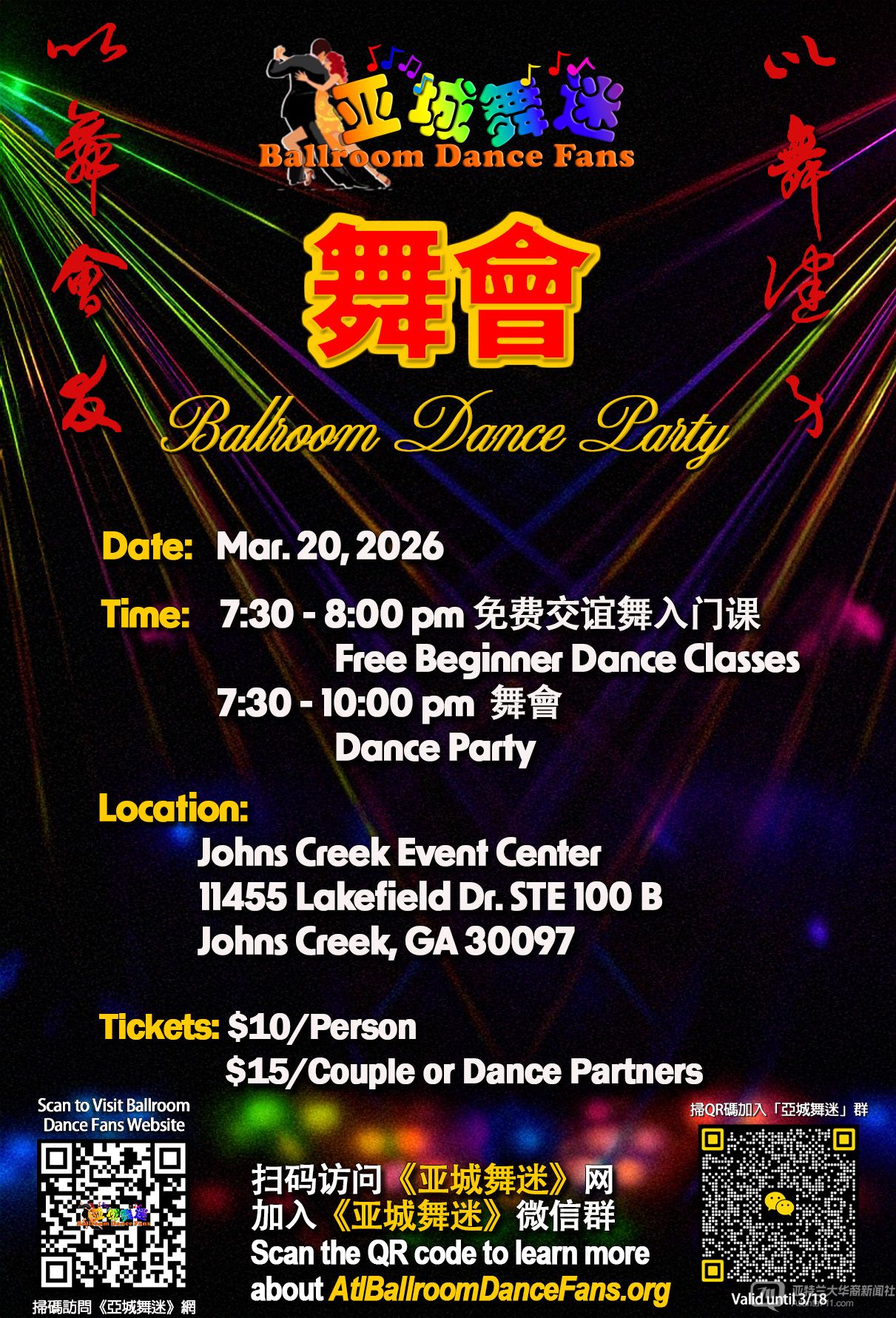 继欢庆春节的舞会之后,我们又将重聚三月的《亚城舞迷》舞会,在优美的舞曲中翩翩起舞,度过一个美好的夜晚!