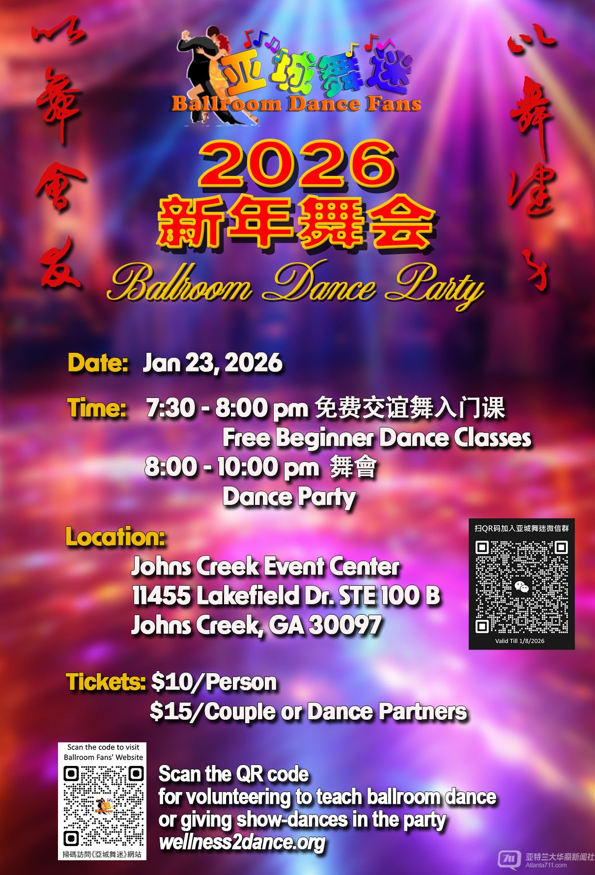 在新年的1月23日(星期五)晚,我们又将如约而至,相聚于2026新年舞会。在优美的舞曲中翩翩起舞,欢庆新的一年到来,度过一个美好的夜晚!